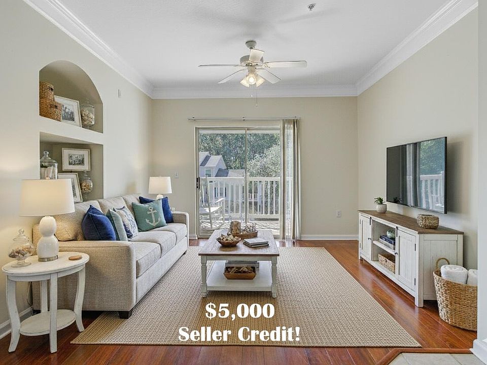 Seller offering $5,000 credit for the buyer to use any way they choose--toward closing costs, a rate buy-down, or post-move-in updates. This 2-bedroom, 1-bathroom condo in The Madison at Park West combines comfort, convenience, and a true Lowcountry lifestyle. The open floor plan connects the kitchen, breakfast nook, and family room, creating a bright and functional main living space ideal for relaxing or entertaining. The unit has been freshly painted throughout, with brand-new carpet in both bedrooms and closets. The kitchen comes fully equipped and includes the refrigerator, washer, and dryer, offering a seamless move-in experience. Just off the family room, a spacious third-floor balcony offers beautiful elevated views--so nice because of the unit's top-floor position, giving you extraprivacy and a peaceful outdoor space to enjoy. Residents of The Madison enjoy resort-style amenities including a fully equipped fitness center, sparkling pool, outdoor kitchen and grilling area, tennis courts, large playground, car wash station, and a 60-foot community crab dock. Located close to everything - the local grocery store is around the corner, Costco is five minutes away, and the middle school sits directly across the street. The beaches of Isle of Palms are just a 15-minute drive, making this the perfect spot for anyone who loves an active, coastal lifestyle. This condo delivers a winning combination of style, comfort, and location in one of Mount Pleasant's most desirable gated communities.