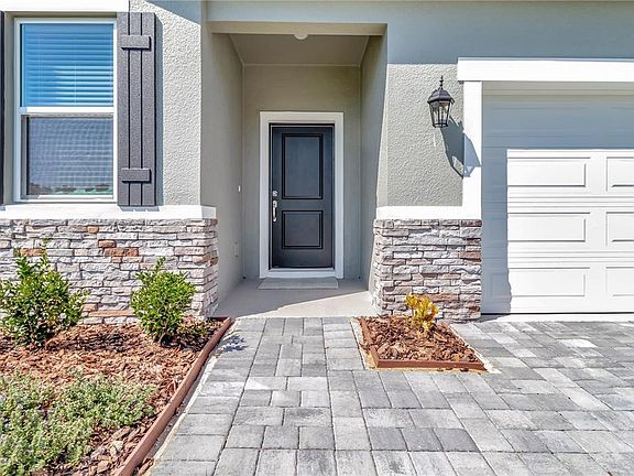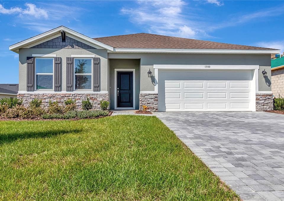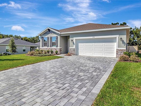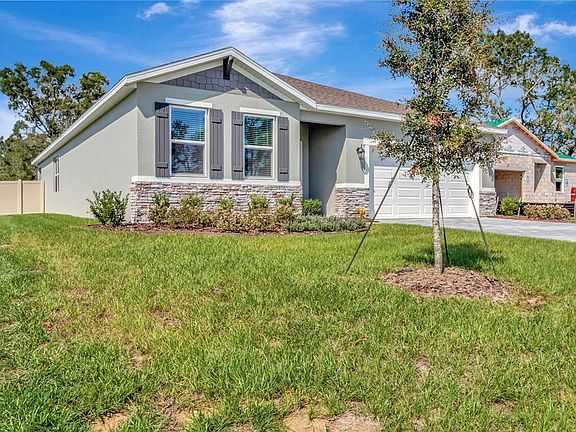 Better than the builders! This Webber plan is a brand new construction sitting on one of the largest lots in the new planned community of Hidden Cove Estates. Listed below the builders asking price, it also includes all the new home warranties. Added features include custom paint, custom lighting, ceiling fans throughout, blinds, all appliances, custom fence, painted garage and floor, and backyard irrigation. These upgrades are not offered by the builder. This beautifully designed four bedroom, three bathroom single story home offers comfort, privacy and functionality. Excellent for guest accommodations. The home features two expansive master suites each with a private bathroom and ample closet space - including three walk in closets throughout the home. The open-concept layout seamlessly connects the living, dining, and kitchen areas, creating a warm and inviting space for entertaining or relaxing. Each bedroom offers generous proportions, while the bathrooms are thoughtfully appointed with modern fixtures and finishes. Ideal for guests, or those seeking single-level living with luxurious touches, this home combines versatility with everyday comfort. Enjoy a morning cup of coffee or an evening glass of wine on your private covered patio overlooking a scenic view. Property is located in the new Hidden Cove Estates development by Stanley Martin Homes located at 1390 E. Lakeview Dr. in Eustis, FL 32726. To date Plumbago Court has not been registered in maps, but can be found in this development.
