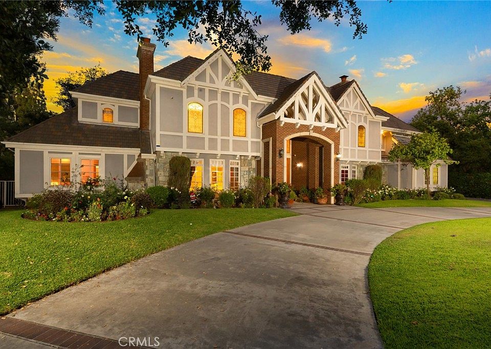 Located in the prestigious Santa Anita Oaks neighborhood, this extraordinary Tudor-style estate graces Rancho Road—one of Arcadia’s most picturesque and sought-after streets—just steps from iconic Hacienda Drive. This legacy property, set within the highly acclaimed Arcadia Unified School District, offers timeless architecture, generous scale, and exceptional indoor-outdoor living on an expansive 38,000 square foot flat lot. A circular driveway welcomes you with room for over 10 vehicles and leads to an attached 4-car garage, adding both convenience and distinguished curb appeal. Built in 1993, the residence features six spacious bedrooms and six and a half bathrooms, including a grand primary suite with a sitting area or office nook, a spa-like bath, walk-in closet, and a private balcony overlooking the grounds. Additional bedrooms also feature balconies that offer tranquil garden and treetop views. Inside, a soaring 25-foot foyer with a dramatic spiral staircase introduces interiors filled with natural light, architectural detail, and elegant proportions. The formal living room, expansive family room, and handsome office each feature a fireplace, while a versatile third living area serves as a media room, guest suite, or potential seventh bedroom. At the heart of the home is a beautifully appointed kitchen with a large center island, abundant cabinetry, and a charming breakfast nook overlooking the lush backyard. Designed for effortless entertaining, the home flows seamlessly to a covered patio and a resort-style backyard with mature trees, a sprawling lawn, sparkling pool and spa, and a built-in BBQ. Whether hosting an intimate dinner or a celebration for hundreds, the setting is as functional as it is breathtaking. Just minutes from Westfield Santa Anita, the Arboretum, Santa Anita Park, and world-class dining and golf, this once-in-a-generation offering blends timeless elegance, comfort, and a coveted location in one of Arcadia’s most storied enclaves.