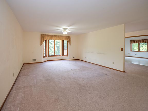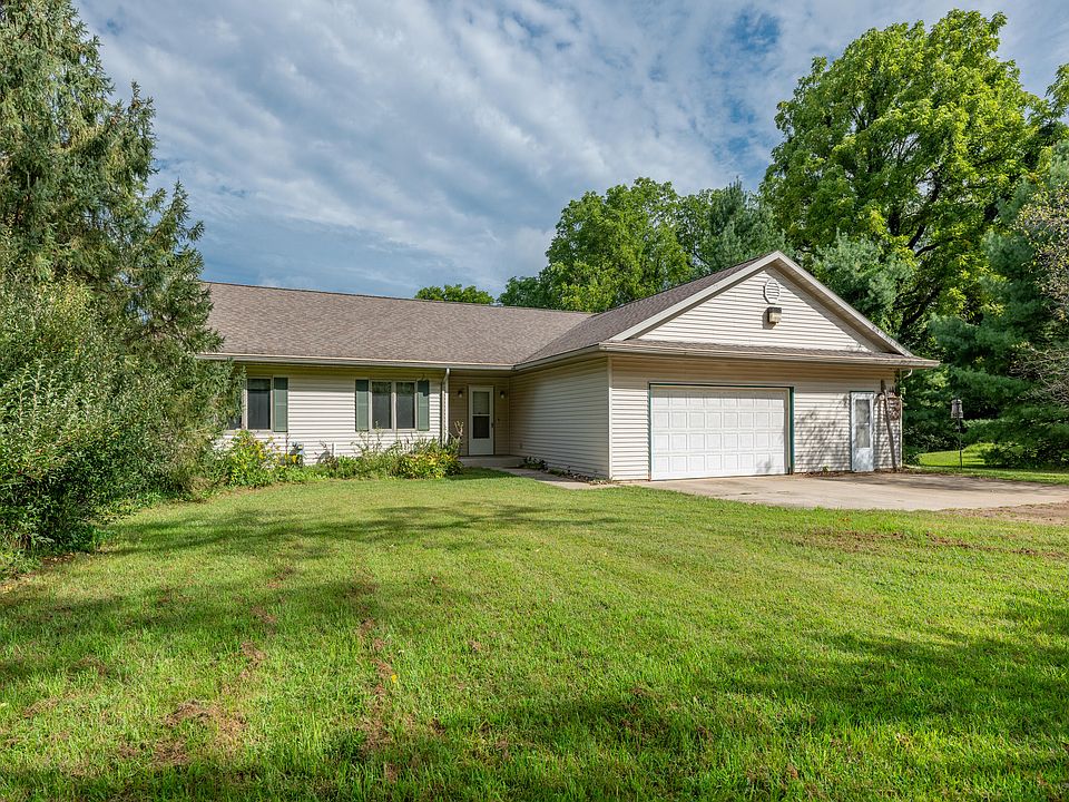 Spacious 4 bedroom 3.5 bath home on 3.75 acres in a country setting, excellent update value enhancement opportunity An expansive and open floor plan with many bonus features including large rooms, bay window, and a finished walk out basement with its own kitchen, fireplace, bedroom, bathroom, and multiple glass doors exiting to the patio and back yard waiting for your entertaining plans. The main floor has 2 patio door existing to an elevated deck with a twin stair case to the patio below. Larger 2 1/2 car garage plus a bonus storage/workshop stall. This beautiful rolling wooded property includes a fenced in area and a quaint barn in good condition with metal roof. To truly appreciate this home you have to tour it in person. **Also includes whole home generator.