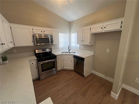 - Description: Breakfast Bar/Counter,Garden Window,Man Made Woodor Laminate Flooring,Quartz Countertops,Stainless Steel Appliances,Vaulted Ceiling