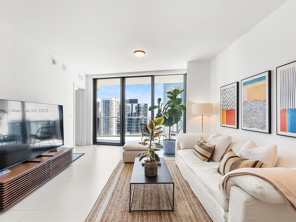1 Bedroom + Den + 2 full baths at SLS Brickell. Oversized terrace with amazing city & bay views, lots of sunlight. Porcelain white flooring thru-out, roller shades & blackout, and customized closets already set-up. Open kitchen with quartz countertops, BOSCH appliances & white/grey cabinets. Amazing amenities include rooftop, pool, spa gym, kids room, spa room, 2 renowned on-site restaurants & access to the exclusive SLS Hotel service. One parking space assigned. Easy to show!
