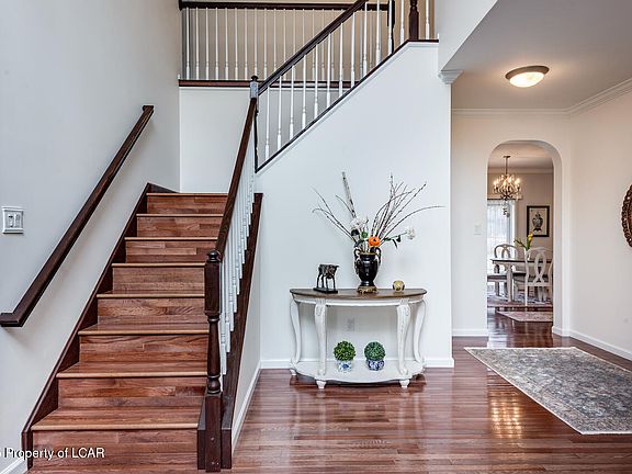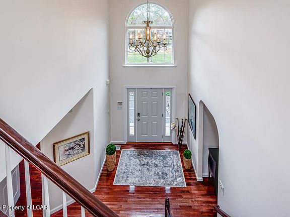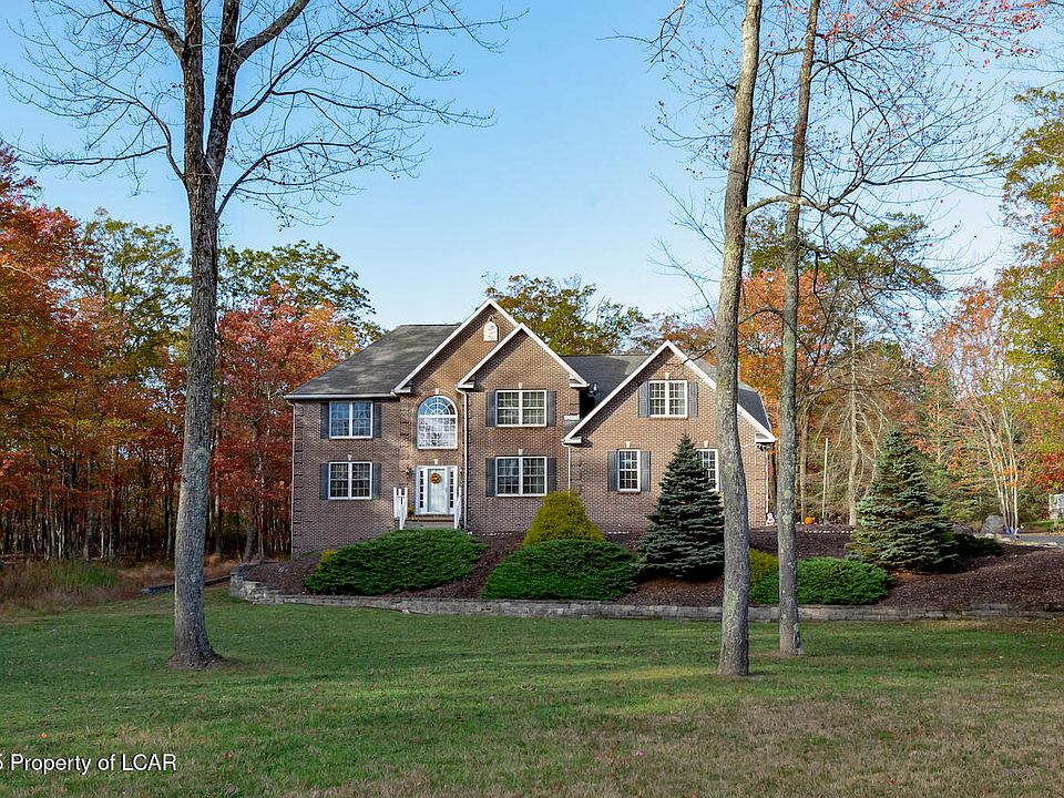 Tucked away on 3 private acres in the heart of Bear Creek, this custom-built all-brick home offers timeless design and exceptional craftsmanship. Featuring 4 spacious bedrooms, 2.5 bathrooms, and a first-floor office, the home is as functional as it is elegant.Step inside to the impressive two-story foyer highlighted by a stunning staircase and warm natural light. The updated kitchen opens to a welcoming family room with a vaulted ceiling and a wood-burning fireplace. Throughout the home, hardwood and tile floors enhance the sense of quality and style. The second-floor laundry adds convenience, while the walk-out basement is ready to be finished for additional living space. An oversized two-car garage provides ample storage.