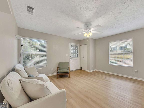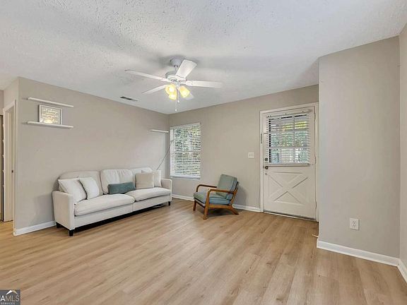 Welcome to this beautifully updated ground-floor condominium in the desirable Bellemeade Commons community of Marietta. This bright and open 2-bedroom, 1-bath home features a spacious, inviting floor plan filled with natural light and stylish updates throughout. The interior showcases beautiful light-toned, wood-look flooring throughout that adds warmth and a modern touch to every room. The kitchen offers white cabinetry, ample storage, and convenient garage access, along with a view to the family room for easy entertaining. Enjoy the convenience of a parking pad for two cars near the front door and a private one-car garage, providing plenty of space for everyday living. Recent updates include fresh interior paint, updated lighting, blinds, and modern fixtures throughout. This home is all on one level, completely private, with no shared walls and no one above, making it perfect for a first-time homebuyer or someone looking to downsize. Located just minutes from Marietta Square, Downtown Smyrna, and The Battery Atlanta, this move-in-ready home offers modern comfort, convenience, and timeless appeal!