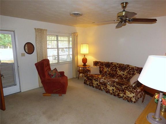 This property is a neat 3 bed 1.5 bath brick home in a quiet location at the end of a cul-de-sac. The full bath has shower tub combo and the half bath is in the master bedroom. The living and bedrooms are all carpeted. There is an extra room off of the kitchen that has been used as a TV and office room, and contains the washer and dryer. There is a large patio area in back with a wooden privacy fence. The back yard also has a storage and workshop building and also a small portable storage building. A carport is also located in the back yard for additional covered parking. Owner says there are wood floors under the carpet. Call us to get a look inside!