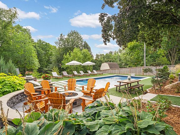 Incredibly charming Cape Cod style home with one of the most awesome yards in GV near Sweeney Lake. A true entertainer’s dream with a completely updated interior with a soft, sophisticated coastal decor throughout. The stunning high-end white kitchen features a massive center island and seamlessly flows out to the show-stopping backyard. Step outside to a private oasis that rivals a luxury resort, complete with a salt water pool with custom lighting, dramatic gas torches, plus a hot tub, fire pit, and multiple lounging and dining areas perfect for summer gatherings. Inside, the home is thoughtful layout with 2 BRs and 3 bathrooms on the main floor, including a convenient pool-access bath with sauna adjacent to the mudroom/laundry area. The heated and cooled garage also boasts an and workout area with a wall of retractable glass to the pool. The inviting great room creates a central gathering space. The 2nd flr features 2 more BRs including a lg Primary Suite with a luxurious full bath and a massive walk-in closet & 2nd laundry. The nicely finished lower level includes a cozy family room, additional bedroom, & 3/4 bathroom.. This is more than a home—it’s a lifestyle.