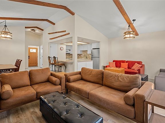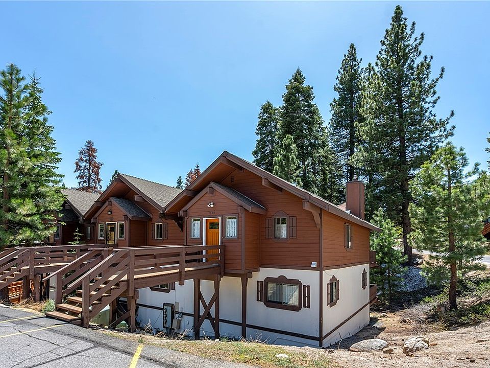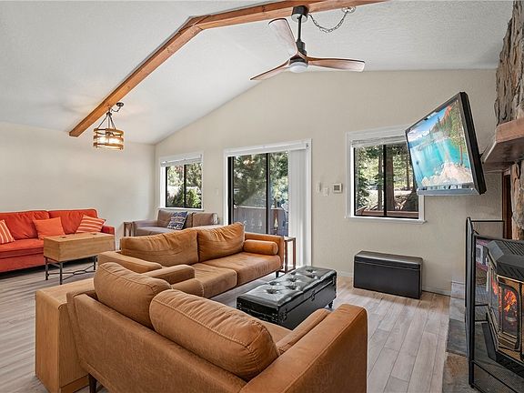 This spacious 3 bedroom, 3.5 bath end unit is nestled in a serene, forested setting on a quiet cul-de-sac in Tyrolian Village. It features convenient parking right in front and a welcoming entryway/mudroom perfect for storing your Tahoe toys and equipment. As you step inside, you’re greeted by an open floor plan encompassing the living area, a tiled kitchen with a center island, dining area, and an expansive living room with gas insert fireplace. This space includes an additional seating area and a sliding glass door that leads to a large deck, offering views of the tranquil wooded surroundings. All bedrooms, including two primary suites, an ensuite bedroom, sauna, and storage/utility closets are located downstairs. Both primary suites have direct access to the lower deck. Short term rentals are allowed. Right outside your front door, you’ll find miles of hiking and biking trails, tennis courts, and skiing at Diamond Peak Ski Resort, with local and recreational amenities nearby!