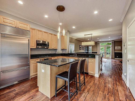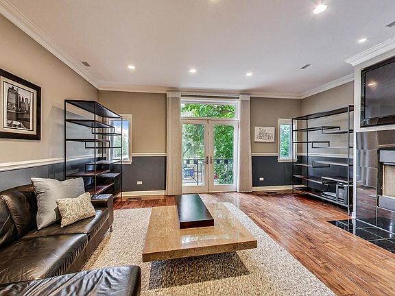 Don't miss this stunning ~3300 sqft West Loop 4 bedroom, 3.5 bath corner townhouse! Custom built-ins and beautiful wide plank walnut floors throughout. The first floor features a full bath along with beautiful French doors that open to a large bedroom. The main floor consists of a spacious living/dining room with a gas fireplace, built in surround-sound, balcony overlooking neighboring Skinner Park, and half bath. The open kitchen features all stainless steel appliances, granite counters, breakfast bar, and kitchen island for ample seating options. Additional balcony off the kitchen with space for outdoor dining and grilling. The third-floor master retreat features a gas fireplace and luxurious en-suite bath with double vanity, steam shower w/ body sprays, oversized airtub and a beautiful customized walk-in dressing room featuring built-in storage and dresser drawers. The top level features a bonus living room leading to the roof deck, plus 4th bedroom and full bath for your guests! New heating/cooling systems. Huge 2 car attached, heated garage also w/tons of extra storage. Enjoy a stroll to the Block Y association's professionally landscaped courtyard and Koi pond. Great neighborhood across from Skinner Elementary School with all the great dining and entertainment the West Loop has to offer at your doorstep.
