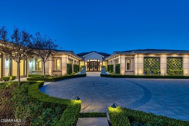 Landmark masterpiece estate in guard gated North Ranch Country Club Estates! Absolutely exquisite contemporary showplace atop 6 privately gated acres with complete privacy and explosive unobstructed views! Nearly 10,000 square foot newer SINGLE STORY designed and built with the finest finishes throughout! Interior features include imported stone, custom burl and walnut wood finishes, lit onyx wet bar, multiple sets of electric pocket doors and magnificent detailed ceilings throughout. An indoor/outdoor breezeway leads to a separate 2 bedroom guest house. The resort quality grounds are simply breathtaking! Custom tiled pool and spa, fountains, outdoor living room with barbecue center, lush manicured lawns and an epic waterfall cascading koi pond all with the best views North Ranch has to offer! Other amenities include a 5 car garage, massive long private driveway and courtyard, top of the line solar and smart home systems, security cameras, beautiful formal library, large gym and so much much more. A one of a kind elite estate that offers everything!