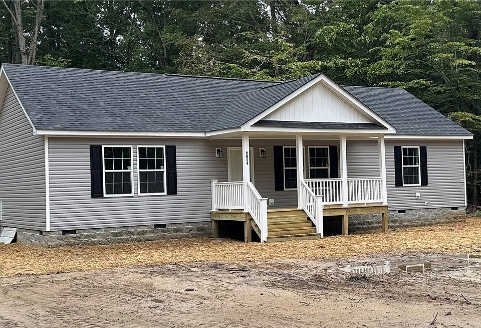 Discover the best of both worlds with this brand-new 1,500 sq. ft. ranch-style home featuring 3 bedrooms, 2 full baths, and a welcoming covered front porch. Nestled just in to Mathews County, you'll enjoy affordable taxes, excellent schools, & a warm community atmosphere, while being only a stone's throw from all the conveniences of neighboring Gloucester County. This Custom Builders Express modular home is exceptionally well built, offering long-term durability, energy efficiency, and a smart open layout perfect for today's lifestyle. Priced competitively at just $233/sq. ft., it's a fantastic value for new construction in such a desirable location with 2 acres of land. Whether you're seeking a peaceful neighborhood, quality schools, or quick access to shopping, dining, and coastal living, this property checks every box. Move-in ready home with the perfect balance of small-town charm and modern convenience within approx. 6 months.