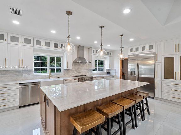 Nestled within the Village of Pinecrest on a rare gated corner parcel exceeding one acre, this exquisite Colonial Revival estate marries timeless architectural elegance with sophisticated modern living. With seven bedrooms and 6 & a half baths, a chef’s gourmet kitchen with butler’s pantry, top-tier upgrade details like a new roof and impact-rated windows, the home is bright, airy and perfect for both refined entertaining and relaxed family life. This unique offering blends privacy, land, and elegance in one compelling package.