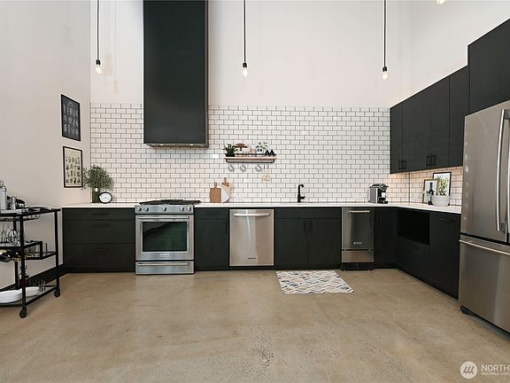 Modern/Industrial loft designed by top Seattle Interior Designer. Zoned for residential & commercial use. Many custom architectural & design features done by local artisans/craftsmen. Primary bed includes gas fireplace, walk-in closet, full custom-bath w/ washroom. Great-room boasts large windows w/automated shades, 18' ceilings, living/dining rm w/ chef’s kitchen that includes gas range + modern appliances. Upper floor loft features work/lounge space, guest bath & Murphy bed, original 1950s/1970s vintage billboards & 1980s record posters, private deck & rooftop access. House has insta-hot H2O, Central A/C, security cameras, gas/grill hookup at back patio & rooftop, is pre-wired for solar & EV charging. Great location for house or business