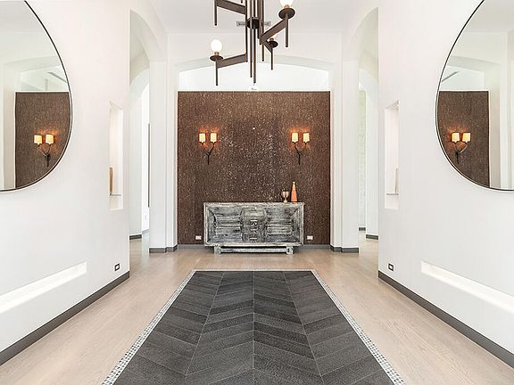 Outdoor kitchen and barFlexible retreatsCustom finishesExpansive covered loggiaGame room with barVanishing-edge poolSpa-inspired bathroom