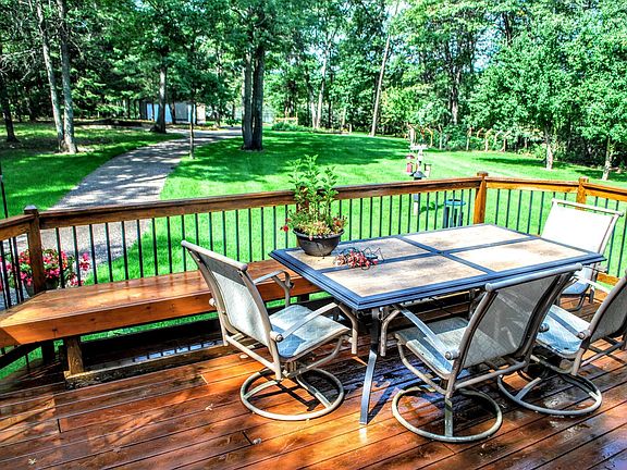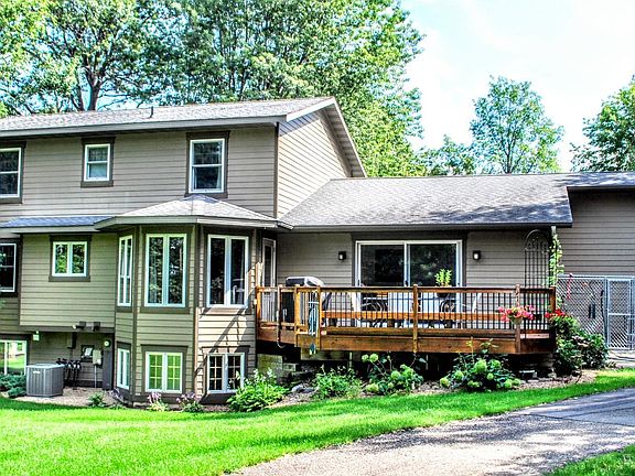 ONE OF A KIND GROUNDS AND LOCATION! Situated across the street from Loren Thompson Park, this exquisite piece of real estate has a city park in the front and a private one in the back! Amenities: 5+ bedrooms, 4 bathrooms, 3 stall heated attached garage, 2 stall detach garage with heated shop and dual overhead doors on each end for snowmobiles or easy boat parking, 3 gardens, 343’ on Rush Lake, 2.07 irrigated acres, new roof, master suite, covered front porch, gas fireplace, multiple living spaces, main laundry/mudroom, refinished hardwood floors, granite tops, new windows up, open main level layout, newer exterior, large deck, dog kennel space, “park-like” private backyard, campfire ring by the lake, newer driveway, extra parking, 2 apple and 2 pear trees, blueberry patch, dock, city sewer and water, fire hydrant front yard, basketball hoop, walking & bike trails across the street, invisible pet fence, refinished garage floor, easy access to winter trails, and onsite private trail.