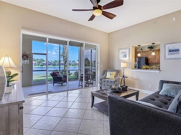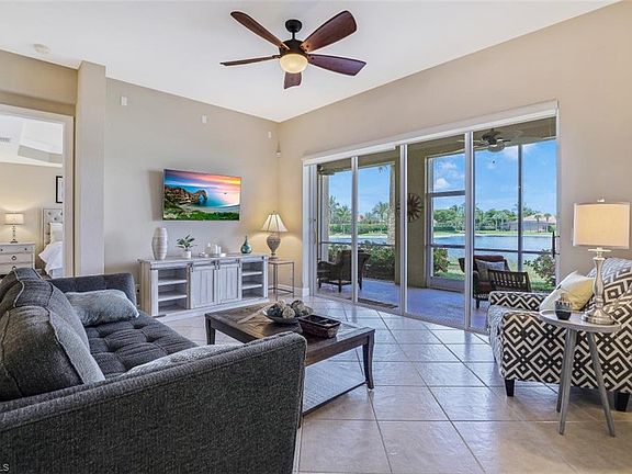Live the resort lifestyle at this stunning Gated Golf community. This spacious 1st floor End Unit has Unobstructed Lake Views and a Private setting. It's just over 2,000 sq ft and has Coffered 10' ceilings, 3 beds, 3 full baths, and 2 car garage, kitchen granite counters and a breakfast bar. The owner's suite has sliders to the screened lanai and a huge walk in closet. The screened walk-out lanai has plenty of room for entertaining and is screened on two sides, providing wonderful air flow. New AC 2019 and water heater 2018. The Plantation is golf cart friendly, pet friendly with a Hudzan-Fry championship golf course (golf membership is optional), beautiful Amenity Center, resort style pool and spa, lap pool, tennis, fitness center, formal and casual dining, pickle ball, and more. And it's close to the International Airport (RSW), Boston Red Sox and Minnesota Twins spring training facilities, Barbara B Mann Performing Arts, Daniels Marketplace (Mellow Mushroom, Whole Foods, Zoës Kitchen)... and of course the sugar sand Beaches along the Gulf of Mexico. Be sure to view the Virtual Tour to see how spectacular Pennington PL #102 is!