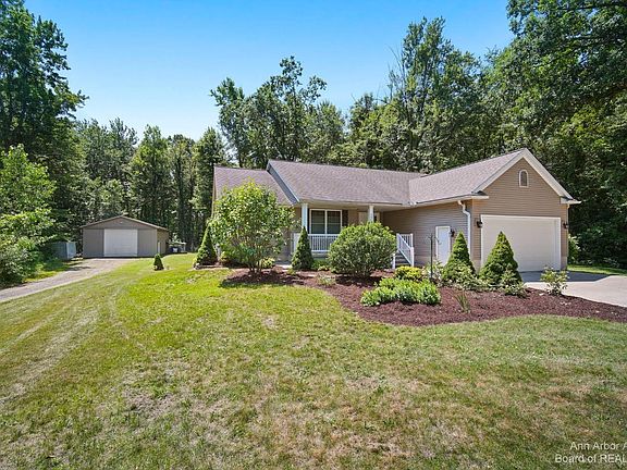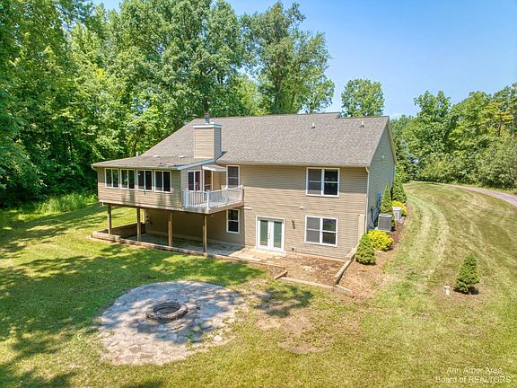 Fantastic new listing just outside of the City of Milan, and minutes from US 23 access. 15 minutes to Ann Arbor and 25 to Toledo. Very attractive and newer (2007) 3 bed 3 bath ranch home, 2 car attached garage, on wooded 5 acre lot. An amazing 30x48 pole barn with 12 ft front door is the icing on the cake for this great secluded property. Move in ready is an understatement. Open entry level floor plan with large living space, wood fireplace, beautiful updated kitchen, new backsplash and flooring. Dining area leads to an enclosed deck for extra entertaining space, plus outdoor deck as well. Large bedrooms, with master enjoying a clean and updated full bath. One bedroom was being used as an office, and very nice office furniture can stay with buyer if desired. Entry level laundry is is a huge bonus. New roof in 2018 (est) and furnace in 2011 (est). Highly desirable Generac home generator is included in the sale. Large walkout basement is ready for finishing, and has a full finished bath. Basement walks out to a patio. Water softener system already installed for excellent drinking water. 5 acres of mostly large trees with tons of shade and privacy. Pole barn rocks so no need to exaggerate. Come see this one asap!, Primary Bath