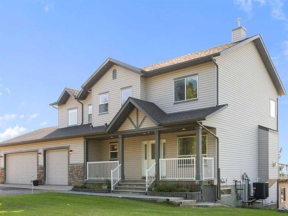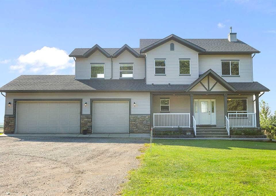 ***Welcome to this breathtaking acreage retreat just minutes from Airdrie, where luxury living meets the tranquility of wide-open country views. Set on an expansive 9.34 acres, this extraordinary property combines timeless elegance, modern updates, and endless space to live, work, and play. Step inside to discover soaring ceilings, striking coffered details, and an abundance of natural light pouring through oversized windows that frame the sweeping backdrop of rolling land. With 4 spacious bedrooms and 3.5 baths, including a spa-inspired 5-piece ensuite, this home is designed to impress. The gourmet kitchen features gleaming quartz countertops, a walk-in pantry, and seamless flow into the dining and living areas, anchored by one of two cozy fireplaces. Entertain in style or unwind in peace on the expansive south-facing balcony, where serene views stretch for miles. The finished walkout basement offers even more space for family and guests, complete with a sunroom, second fireplace, and direct access to the backyard oasis with fire pit. Outside, the property is just as remarkable, boasting a triple attached garage, a detached single garage, and two massive quonsets, ensuring endless storage and workspace options. With a south-facing yard, towering windows, and plenty of room to gather, every detail of this home invites comfort and connection. Perfectly located close to schools and all the amenities of Airdrie, yet tucked away in a private and peaceful setting, this one-of-a-kind property offers the very best of both worlds. A true haven for those seeking space, style, and serenity.