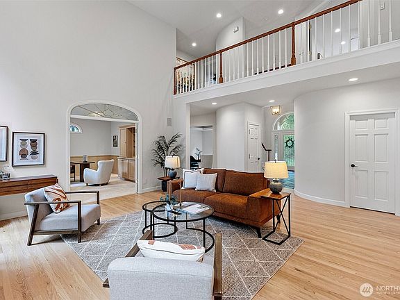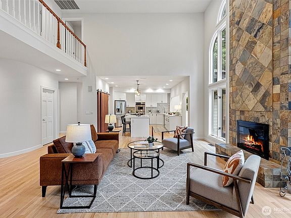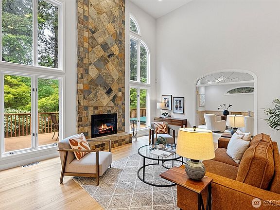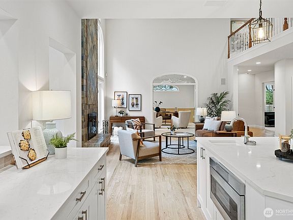 Step into a beautifully updated, light-filled Canterwood home that's thoughtfully designed with elegance & comfort in mind. Ideal for living, working, and entertaining. The newly remodeled open kitchen features quartz countertops, twin ovens, and flows to a sunny, warm breakfast room with spacious deck — perfect for casual mornings or hassle-free entertaining. Refinished ash hardwood floors, fresh carpet, high ceilings and a grand staircase inspire the ideal work-from-home lifestyle. The backyard offers a hot tub, slide, and swing. Metal roof offers peace of mind and futureproof with new NACS EV charger, 75 gal water heater, & whole-house water filter. Enjoy golf, tennis, riding, schools, hospital and dining nearby!