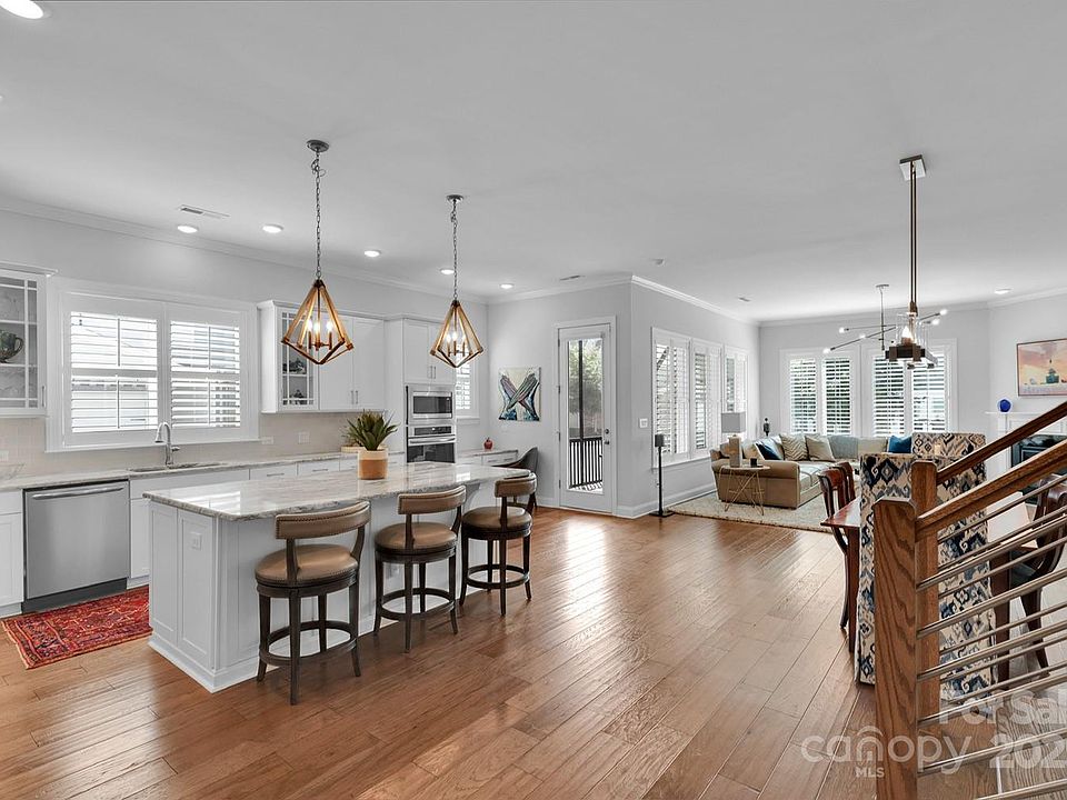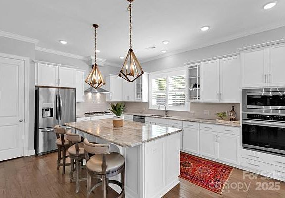 Located in the heart of Ballantyne, this stunning paired villa offers the luxury lifestyle only a David Weekley home can deliver. Thoughtfully designed with abundant natural light, high-end finishes, designer lighting, shutters, and a open floor plan made for entertaining, this home is as stylish as it is functional. The gourmet kitchen is a showstopper, with extra cabinetry, quartz countertops, oversized island, stainless steel appliances, gas cooktop with exhaust hood, built in desk and an impressive walk-in pantry. The open main level flows seamlessly, anchored by a cozy corner fireplace and walls of windows that fill the space with light. Screened walkout porch for grilling or morning coffee. A private study/flex room offers the perfect privacy with french doors. Upstairs, the primary suite is a true retreat—large enough to accommodate a sitting area, walkout screened porch and complemented by a spa-like bath with dual vanities, quartz counters, frameless walk-in shower, and soaking tub plus a massive custom closet. Complete with bonus room/loft for additional space, 2 full secondary bedrooms, large laundry room with granite folding table. The 2-car garage provides high ceilings, storage potential, and epoxy floors plus a driveway to accommodate parking. Enjoy easy living in Southridge, just steps from Ballantyne’s Bowls best dining, shopping, entertainment and conveniences. Quick access to 485, SC, Airport and Ballantyne Corporate Park. This villa isn’t just a home—it’s a lifestyle.
