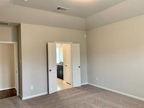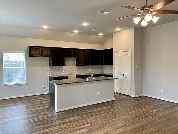 Gorgeous 1 Story Home w/brick & Stone! Vinyl wood plank flooring in family room and hallways, tiled wet areas, carpet in bedrooms. Open floor plan with dining area, family room with windows to covered patio. Gorgeous kitchen with granite counters,upgraded backsplash, beautiful ivory cabinets w/harvest glaze, stainless steel appliance package, pantry and breakfast area with access to fabulous covered back patio. Master suite with vaulted ceiling, master bath with double sinks, granite counter, tub and separate shower & big walk-in closet. 2 of the secondary bedrooms feature walk-in closets. Granite counter in secondary bath.2 car attached garage. Wifi Thermostat, Video Doorbell, 2" Faux wood blinds. 16 Seer AC. Low Tax Rate! Easy Access to I-45! Enjoy a neighborhood boat ramp, private docking facilities, community parks and a corner grocery store within the neighborhood. Multiple parks, pavilions, community center, private boat launch, tennis courts & basketball courts. Call Today!
