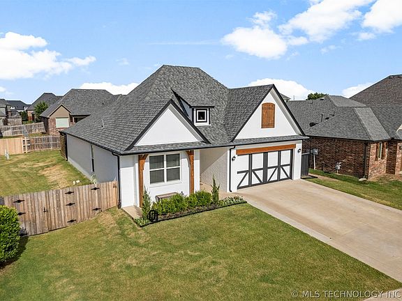Welcome home to this gorgeous 3 bed, 2 bath home in the Yorktown community. This stunning home located in Bixby school district offers a perfect blend of luxury, comfort, and convenience. As you step inside you will be greeted by a spacious and open floor plan that is flooded with natural light. Home features high ceilings, granite counters, stainless steel appliance and an oversized master suite. The backyard is an entertainers dream with an oversized covered area, rocked area for firepit, built in counters and outdoor kitchen, and more.