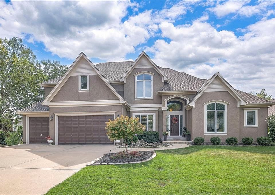 Welcome to this stunning 1.5-story home offering over 5,800 square feet of living space in a fantastic Overland Park location. The inviting entry opens to a formal dining room and home office, setting the tone for the amazing space throughout. The living room is warm and welcoming with vaulted ceilings, a cozy fireplace, and built-ins. The kitchen is truly the heart of the home, featuring an expansive island, double ovens, two sinks, a walk-in pantry, and generous countertop space. Just off the kitchen, a hearth room with its own fireplace and built-ins provides the perfect spot to gather. Step outside to a low-maintenance composite deck overlooking the private, treed backyard.