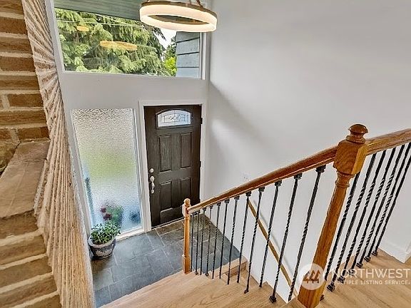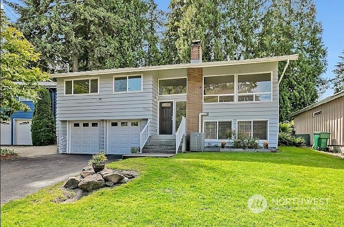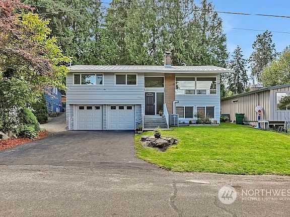 Move-in ready! Situated in a cul-de-sac on Seattle’s desirable north side, this completely remodeled split level is a bright haven of comfort & privacy.At upstairs you're greeted by light washing in from 2 walls of windows–made yet more welcoming by a fireplace & dining room, which opens onto the patio & backyard via glass door.The patio continues to a porch forming part of the sky lighted newly added master bedroom, it has its own walk-in closet & full bath. The home is ready for the hot summer & the cold winter w/ a heat pump. Downstairs is a completely finished apartment w/ separate entrance & laundry,fireplace, kitchenette.Located a brief walk to nature areas,park,trail & golf course,easy access to stores,Light Rail,I-5 access & buses.