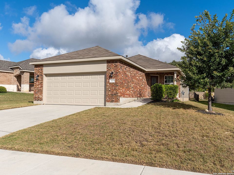 SUNROOM SERENITY ON THE GREENBELT!! Freshly painted and move-in ready, this bright and inviting home is perfectly designed for comfortable living in the active 55+ Hill Country Retreat community. Step inside to an open floor plan filled with abundant natural light, ceramic tile flooring throughout, and a welcoming front door with wrought iron design and rainfall glass. The granite kitchen is a true centerpiece with gas cooking, breakfast bar, abundant cabinetry, and recessed lighting. The split master suite offers privacy, a spacious closet, double vanity, and walk-in shower. Enjoy morning coffee or quiet afternoons in the sunroom with serene greenbelt views, or relax outdoors on the newly updated back patio with wrought iron fencing. This home is packed with thoughtful upgrades including double-hung vinyl windows for easy cleaning, water softener and filtration system, ceiling fans in all bedrooms and living areas, insulated garage door, and whole-house surge protection. Located in a vibrant, gated community with resort-style amenities-clubhouse, indoor and outdoor pools, walking trails, gym, pickleball, and more-this home is perfect for those seeking an easy-to-maintain, low-stress lifestyle with plenty of opportunities for connection and recreation. SEE THIS ONE TODAY!!