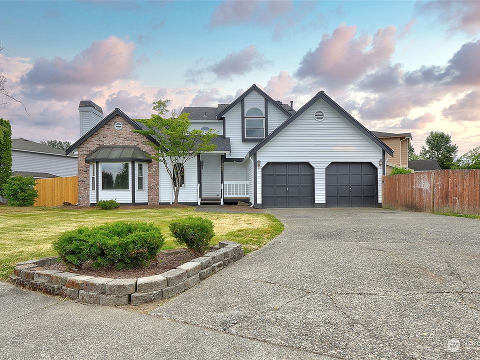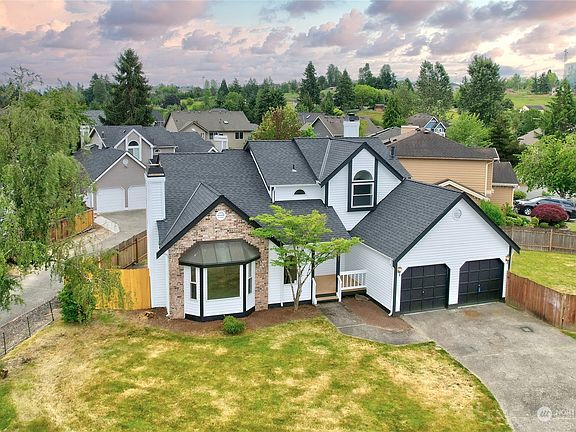 Great corner lot in desirable Sun Meadows neighborhood. This light filled home with bay window, vaulted ceilings and skylights features spacious rooms, hardwood flooring and all new carpeting. Large kitchen with eating bar, casual dining, S/S appliances (some new). Primary bedroom with full bath with double vanity, skylight and large walk-in closet. Plenty of outdoor space and walking distance to park. Over the past several months, the sellers have spent tens of thousands of dollars - new roof, gutters and downspouts; new interior and exterior paint; new carpet throughout; many new window panes; new insulation and vapor barrier in the crawl space and much more! Close to shopping, restaurants, Sounder, bus lines and freeway access.