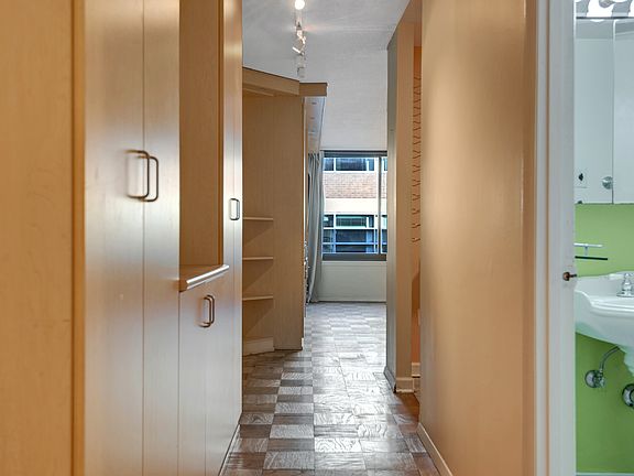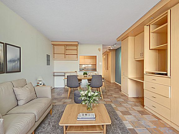 This charming studio apartment on the 8th floor has everything you need and more. At 467 sq ft, the unit offers plenty of storage space and a functional layout. You will love the abundant natural light, beautiful pale hardwood floors, and spacious living area with room for different living, dining, and sleeping arrangements. The galley-style kitchen features a subway tile backsplash, ample cabinet space, brand new dishwasher, and other stainless steel appliances. The home also offers excellent closet storage with custom shelving, and a large full bathroom with a shower/tub combo.