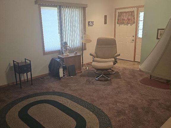 This property is part of the Heritage Estates Condominium Association. If you are searching for a zero entry (No Steps) This may be for you! All Electric Units Features 2 Bedrooms - the Primary BR is 15' x 12' with its own Walk-In Shower Bathroom and a Walk-In Closet. A Full Bath serves the rest of the household along with another BR. Stack Washer & Dryer is inclluded with the sale, Laundry room also has a sink. Kitchen has a Pantry, small eat around Peninsula. All Appliances to stay. A Sitting Room adds another Comfort area for reading, sipping on a beverage looking out to a private Patio - new Patio Doors were installed. HOA fees include: Lawn, Snow, Blanket Insurance and as a Bonus this includes the use of a Community Room if needed for larger social gatherings. This has Counters and a sink/outlets and restroom. This also houses the mailboxes. This Condo is a 55 & over Community. A rear door is entry to a Hallway which connects several units together and leads to the Community Room and the Basement - this is where the Utilities are, also room for minimal storage and serves as a Storm Shelter.
