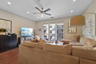 Private balconyBeautiful and functional kitchenLinen closetDouble vanityEnormous peninsula with seatingLush courtyardOversized windows