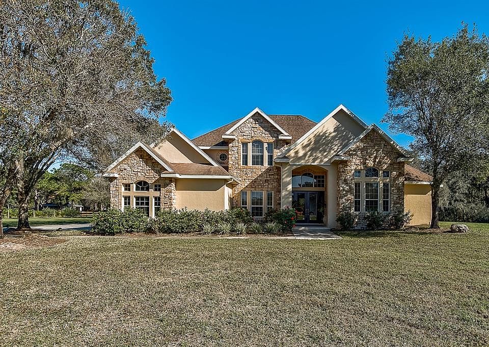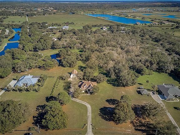 *Available for private in-person and/or virtual showings.* A perfect blend of elegance and sophistication with country charm, this custom-built estate situated on 5+ acres is a MUST SEE! Bring your horses, boat, RV and love of the outdoors! With a main home featuring 4 bedrooms plus a den, 3 bathrooms, a 2 car side-load garage, and a separate guest house/barn that is anything but ordinary with room for trucks/trailers/boats, offers a workshop, half bath, and 1 bedroom 1 bathroom 800 sf. 2nd floor apartment, you'll enjoy space, convenience and the option of additional income! With an open floor plan and tile throughout most of the main living areas for ease of maintenance, this is a great home for entertaining and has been meticulously maintained by the original owners! The eat-in kitchen offers plenty of counter and storage space with large center island, built in desk, and dining area overlooking the private yard. There is also a formal dining room and formal living room to accommodate large gatherings. The first floor master suite is a welcoming retreat featuring double tray ceiling, french doors offering views of the yard, and a spa-like en-suite with dual sinks, garden tub, and walk-in shower. Three additional bedrooms are located on the 2nd level, two of which share a Jack & Jill bath and the 3rd has an ensuite bath & walk-in closet. A covered porch off the back of the house overlooks a serene yard with fire pit and plenty of room for the pool of your dreams. This property is located just minutes from shopping & dining, and a short ride to area beaches! *Ask your Realtor® how you can walk this property using our Interactive 3D Showcase.*