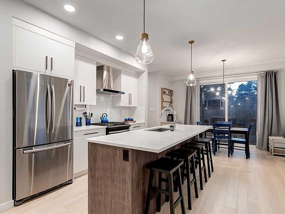 Elegant townhome nestled on a peaceful street in Capitol Hill, directly across from Confederation Park. Designed with modern living in mind, the open-concept main floor features hardwood flooring throughout, a cozy living room with a electric fireplace, a spacious dining area, and a beautifully equipped kitchen with stainless steel appliances, quartz countertops (including a large island), and custom cabinetry. With patio doors to a spacious side yard courtyard and deck area with ambient lighting and sunny west exposure. Upstairs, you'll find convenient second-floor laundry, a full 4-piece bathroom, and three generously-sized bedrooms, including a master suite with a walk-in closet and a private ensuite bathroom. The fully finished basement adds even more space, featuring a 4th bedroom, another 4-piece bathroom, and recreation room. With a private garage that accommodates full-sized trucks with ample room for additional storage. This home is situated on a serene, tree-lined street in Capitol Hill. It’s also conveniently close to SAIT, shopping, and an array of local amenities.