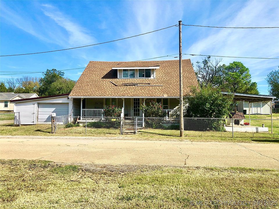 5 FENCED LOTS! 4 bedrooms, 2.5 bath 2-story with spacious living room open to kitchen with concrete counter tops. Large flex space with laundry facilities, tankless water heater, full bathroom and atrium doors to wood deck. 2 bedrooms downstairs and 2 upstairs with small living area and half bath. Cute covered front porch, 2 cellars, 1-car detached garage/workshop PLUS deep carport for extra vehicle covered parking, mowers, etc. and 2 storage buildings - one older and one newer. All on 5 corner fenced lots with city-owned vacant lot across the street.