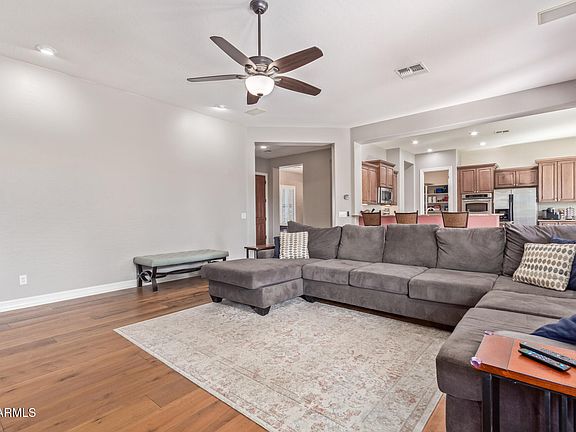 Single level, 3 full baths, 3 car garage, 1/3 acre on a corner lot. Great value in quiet neighborhood with homes on estate sized large lots. Beautifully landscaped front yard with entry courtyard with large seating area. Formal foyer with formal dining or office on the left. Huge great room opens to kitchen and very large dining area. Real hardwood floors in dining and great room with gas fireplace with wood mantel. 10 ft ceilings and all rooms are large and spacious. Huge gourmet kitchen with breakfast bar, extended upgraded cabinetry, backsplash, and undermount lighting. Built in desk in wide hall by the 3 bedroom split. Large private covered patio and huge grass backyard. Two new ac units in 2024, new Kitchenaid dishwasher in 2023 and water softener in 2024. Large laundry area has cabinetry. Tandem garage with storage cabinets and workbench can stay.