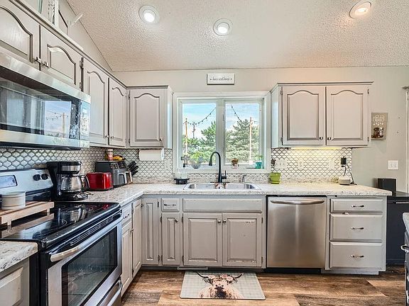 Welcome home to this great split level home in a convenient New Prague location near schools, parks & HWY 21. The spacious main floor has vaulted ceilings in the living and dining area. The dining room has sliding glass doors that lead to the deck. The gorgeous island offers extra dining space. The living room is complete with a beautiful stone gas fireplace. The primary bedroom is spacious with a walk through bathroom and walk in closet. The upstairs is complete with another bedroom. On the lower level, you will find the family room, a perfect place to relax and unwind. Two additional bedrooms and a bathroom. The house is situated on a corner lot with a fence. This one truly has it all, come visit today!