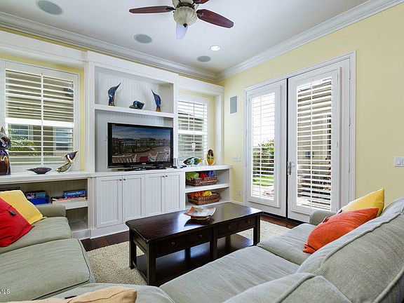 Stunning Marina Retreat in Seabridge in the Channel Islands harbor***This fabulous west facing home in a magical setting has the largest lot on gate guarded Coral Island with expansive and spectacularly upgraded yard for entertaining, including large BBQ island with granite countertop bar, sink, icemaker, 2 burners, and large Viking BBQ, two large side yards, dog run, and so much more ***Built in 2007, this 4 Bedroom, 3 1/2 Bath home with movie theater, multiple custom music zones inside and out,3 car garage, and 45' boat slip boasts some of the best harbor views***Designed to maximize the benefits of coastal cross breezes, magical sunsets and sun on all sides of the house daily, this is truly an entertainer's dream home***Once you enter the home, there's a large great room with custom built-ins, a Kitchen Suite, including large granite island, 6 Burner stove with grill, 3 ovens, Sub Zero refrigerator, white bead board cabinetry, a butler's pantry with Sub Zero refrigerated beverage drawers and so much more***The Downstairs includes a full bedroom and bath, formal dining room, large Den with beautiful walnut hardwood floors and neutral carpet***Upstairs, there are 2 additional bedrooms and bathrooms, a movie theatre with surround sound and the Master Suite