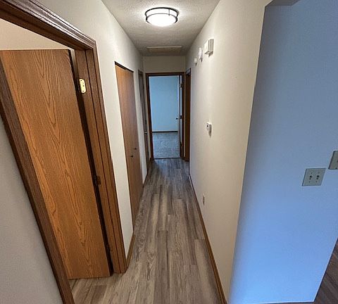 Apartment currently under construction, new paint and flooring.