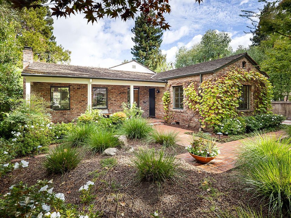 Classic Crescent Park cottage style home with updated interiors and preserved period details. Exterior brick cladding accented with Boston ivy, freshly painted interiors, gleaming hardwood floors, and original metal-framed casement windows. The spacious living room, wrapped in windows and a glass-paned door to the rear yard, features a fluted-mantel fireplace as the focal point. The formal dining room is highlighted by a modern five-light globe chandelier. The bright kitchen has space for a breakfast table and features newly painted taupe cabinetry with white tile countertops and full-height backsplashes, plus all-white appliances including a gas range, dishwasher, and refrigerator. 3 bedrooms and 2 updated dual-entry baths include one with tub and one with frameless-glass shower. The private rear yard with living wall provides raised garden beds, Japanese maples, and expansive brick patios that wrap around to one side of the home. Separate laundry room with washer/dryer, detached one-car garage, abundant off-street parking, and security alarm. Exceptional location just 2 blocks from Eleanor Pardee Park, 1 mile to University Avenue shops and restaurants, and access to acclaimed Palo Alto schools.