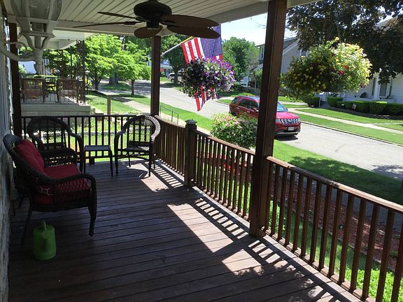 STYLISH & PRACTICAL describes this Cambridge traditional home that has been updated with modern touches and also open concept combining an 'all window' family room, dining room, and kitchen. Front living room is stylish with a modernized corner gas fireplace and practical with built in bookshelves and storage cabinets. Large dining room with large windows can be used for many purposes - also has half bath right there for convenience! Stylish stainless steel appliances stay with house and the practicality shines through with rooms that are newly painted & new flooring throughout: carpet & vinyl. Additional heating with woodburner in rear dining area. Upstairs gives you practical bedrooms nicely decorated and nicely sized, while the bathroom has updated touches for contemporary style. Exterior offers ramp off back door, fenced in back yard, detached garage, covered front porch to enjoy mornings or evenings, nicely landscaped, and home is adjacent to alley for easy access. Basement has lots of storage, workshop area, and partly finished for multiple uses. Great home, great price......what are you waiting for?