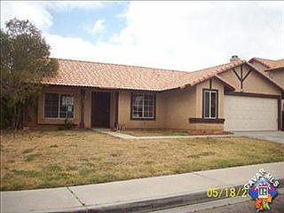 This single-story home is located in East Palmdale on a corner lot. Property has over 1300 square feet of living space with 3 bedrooms and 2 bathrooms. Features include a tiled fireplace in the living room, a dining area in the kitchen, a laundry area in the hallway, a 2 car garage, and a front lawn.