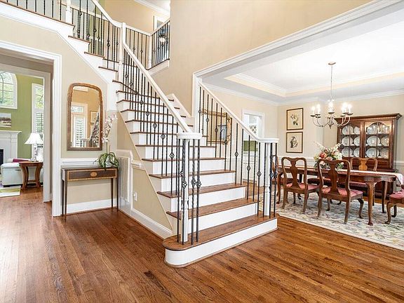 This stunning all-brick estate offers 4 bedrooms, 4 bathrooms, and 4,686 sq ft of luxurious living space on a picturesque 1.09-acre lot. From the moment you step inside, the grand two-story foyer, gleaming hardwood floors, and elegant millwork create an inviting sense of sophistication. The first floor features a spacious primary suite with a beautifully updated master bath (2020) complete with double vanity, whirlpool jetted tub, and step-in shower, along with a convenient guest bedroom and full bath. The main level also showcases formal living and dining areas, and a newly renovated kitchen (2025) with an island, ample storage, and plenty of space for gathering and entertaining. A generous laundry room with a utility sink adds both convenience and function. Upstairs, you'll find two additional bedrooms—each with walk-in closets—plus multiple flex rooms and a generous bonus room featuring a custom built-in bar countertop, perfect for entertaining or relaxing. The upstairs HVAC system was replaced in 2023, with the downstairs HVAC updated in 2024, ensuring year-round comfort. Step outside to enjoy the beautifully painted exterior (2023), updated shutters (2022), and a deck overlooking the landscaped backyard, ideal for morning coffee or evening gatherings. Additional upgrades include a shingle roof and gutters installed in 2022, updated flooring (2022), a whole-home generator (2021), and fully renovated secondary bathrooms (2024). With its timeless curb appeal, spacious design, and refined finishes throughout, this home perfectly blends luxury, comfort, and modern upgrades, offering a move-in ready lifestyle for the discerning buyer.