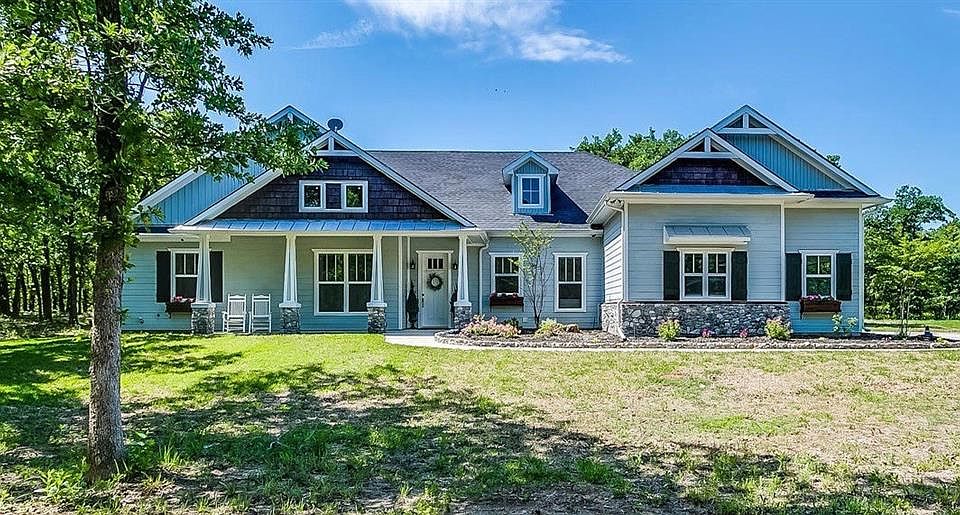 Craftsman Cottage tucked away in four wooded acres and an outdoor oasis you won't want to miss. Gorgeous open concept with vaulted ceilings. Gourmet like kitchen with large gas cooktop, pot filler, no touch faucet, walk in pantry and custom detailed cabinetry.Office has retro style pocket doors with a transom window. Master bath has a marble walk in shower with dual heads. Second bedroom has its own ensuite bath and walk in closet. Media room or flex space hidden upstairs. Pool boasts a waterfall and attached spa. All can be enjoyed by the fire-pit. Home has a zoned hvac, spray foam insulation for energy efficiency. No city taxes