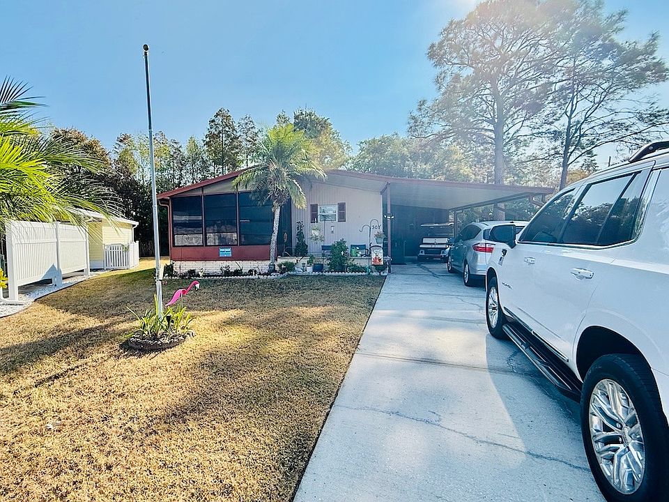 CHARMING 2-BEDROOM, 2-BATHROOM HOME LOCATED IN A PARK WITH A LOT RENT LESS THAN $700!! Enjoy your own space with no neighbors directly behind, plus a lengthy driveway that accommodates 4 to 5 vehicles. Host gatherings in either the Florida room or screened-in porch, both ideal spaces for entertaining friends and family. Inside, the kitchen is equipped with a breakfast bar, a modern stove and built-in microwave, and flawlessly connects to the dining room and living room. Laminate flooring extends throughout the main living areas, while the bedrooms are carpeted. Wide hallways ensure easy navigation for those using a wheelchair or walker. Head to the main bathroom, where you will find an updated vanity, a tub/shower combo, along with an indoor laundry space complete with a washer and dryer. Off the spacious master bedroom is the en suite bathroom complete with an upgraded vanity and walk-in shower. This home is part of a fantastic community and is awaiting you! Come see it today! **Home is sold partially furnished as described in listing.** Heatherwood Village is a beautiful 55+ community full of activities for active seniors. Its location is perfect for those interested in shopping, restaurants, movie theaters, downtown, and more. Amenities in this park include a clubhouse, pool, hot tub, and shuffleboard courts. Two small pets allowed with breed restrictions. 80/20 Rule applies. Lot Rent $635. KITCHEN: 8 x 12 • Laminate Flooring • Chandelier • Refrigerator - GE • Stove - Frigidaire (with Vent Hood) • Microwave - Samsung (Built-In) • Updated Backsplash • Breakfast Bar with 1 Chair • Pantry - 1 DINING ROOM: 8 x 10 • Laminate Flooring • Ceiling Fan with Light • Built-In Hutch • Table with 4 Chairs LIVING ROOM: 14 x 18 • Laminate Flooring • Ceiling Fan with Light • Rocker Recliners - 2 MAIN BATHROOM: 6 x 8 • Laminate Flooring • Single Sink • Tub/Shower Combo LAUNDRY AREA: 4 x 6 • Washer - GE • Dryer - Unknown • Shelving • Located Inside - Off: Main Bathroom MASTER BEDROOM: 14 x 14 • Carpet Flooring • Ceiling Fan with Light • Walk-In Closet: 6 x 8 (Built-In) • UNFURNISHED MASTER BATHROOM: 12 x 14 • Single Sink • Walk-In Shower • Linen Closet GUEST BEDROOM: 10 x 12 • Carpet Flooring • Ceiling Fan with Light • UNFURNISHED FLORIDA ROOM: 10 x 14 • Carpet Flooring • Patio Table Set • Located Off: Living Room SCREEN ROOM: 12 x 12 • Concrete Flooring • Located Off: Carport SHED: 10 x 12 • Concrete Flooring EXTERIOR: • Aluminum • Single Pane Windows • Gutters • Carport: Single • Roof Type: Shingled • A/C: Unknown • Air Vents Location: Ceiling COMMUNITY: • Clubhouse • Pool • Hot Tub • Shuffleboard Courts The above information is not guaranteed. It is the buyer's responsibility to confirm all measurements, fees, rules and regulations associated with this particular park. This mobile home is sold "As Is" as described in the description above. There are no warranties or guarantees on this mobile home.
