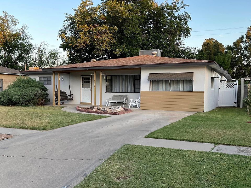 This home is in a great neighborhood & feels like NEW, It has character and updates! Complete with Elegant Farmhouse Style! 3 bedroom and 1 FANTASTIC full bath, Formal Dining, A Sunroom/Laundry Room w/ view of the private backyard! A New Mini Split HVAC in sunroom, new tile flooring & custom bench! New Granite, Lots of BRUSHED GOLD accents! Lights, hardware, fans, modern pipe shelving in the kitchen!! (All Gold) Kitchen has new cabinets, Faucet, a breakfast bar (all granite), a Butler's Pantry with modern black pipe shelving & a wine fridge, New Appliances (Fridge, stove, wine fridge a stainless and gold Z-Line Vent Hood) all convey, new flooring and a custom barn door! The Full Bath has 70 inch granite countertop, new cabinets, vessel sink, gold faucet, touch screen 60 inch mirror that is dimmable and defogging, a wall mounted separate makeup vanity, new tile shower, new flooring! Primary Bedroom (new carpet, new walk-in closet w/ glass panel barn door, French Entry Doors and more!