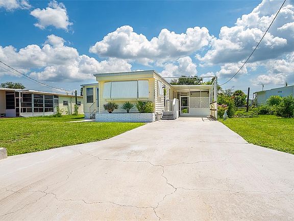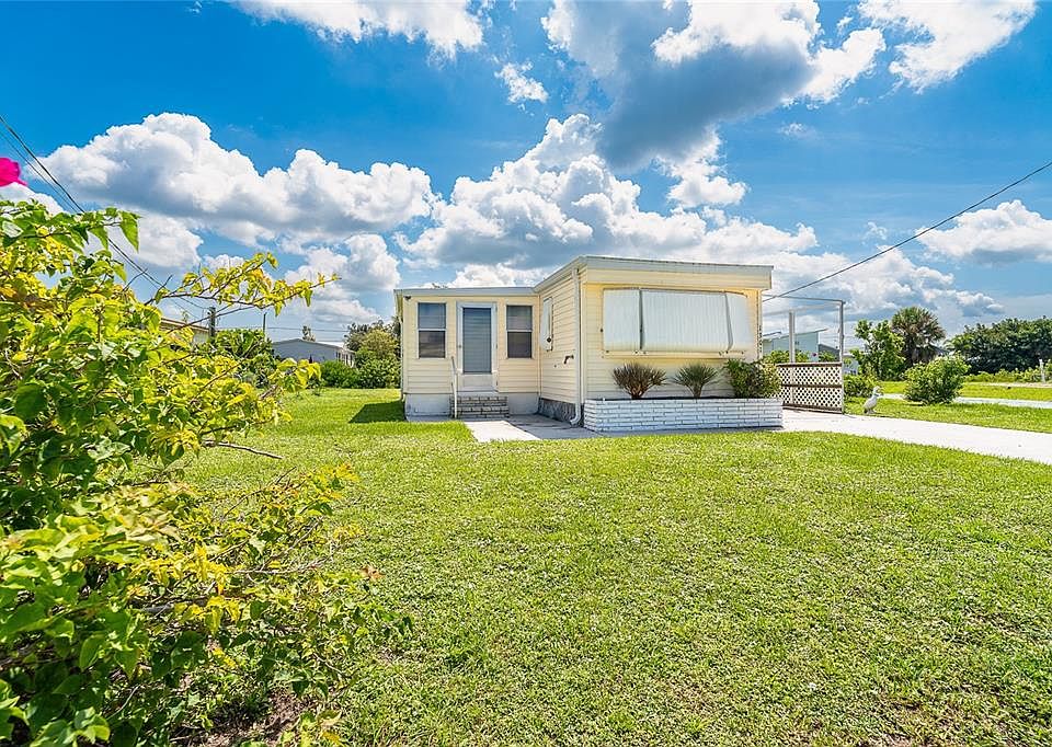 Welcome to Manatee Cove (Holiday Mobile Estates) in beautiful Englewood, Florida! This active 55+ deed-restricted community is pet friendly, golf cart friendly, and best of all—you own the land with no lot fees! Membership to the clubhouse is optional, giving you flexibility to enjoy community activities as you wish. This charming 2-bedroom, 2-bath SALTWATER CANAL WATERFRONT home offers 880 sq. ft. of living space and is being sold fully furnished—ready for immediate occupancy. Also, nearby are a variety of GOLF COURSES to choose from. With its own private dock, this property is perfect for boating, kayaking, canoeing, or paddleboarding right from your backyard. The home features a single-wide layout with a bump-out and storage shed, plus a spacious lanai with windows and screens to enjoy year-round. Major updates include: new roof (2023), HVAC (2019), water heater (2022), newer plumbing, and updated electric. The stylish wide-plank vinyl flooring runs throughout, enhancing the open and airy feel. Inside, the bright and welcoming great room flows into a refreshed kitchen complete with newer cabinetry, sink, fixtures, disposal, two pantries, and 2022 dishwasher and microwave. The split bedroom design provides privacy, with the primary suite overlooking the dock and canal, featuring a generous closet and a beautifully remodeled bath. The guest bedroom also has an en suite bath with newer vanity and toilet. Step outside through the screened lanai door and onto your own private dock. For boaters, there’s also a community boat ramp nearby (association membership required), providing easy access to Redfish Cove and Lemon Bay. This waterfront lifestyle comes at a fantastic value—bring your fishing poles and start enjoying sun, fun, and Florida living! All just minutes from shopping, dining, and the beach. Four additional storage closets in the home. Staging items are excluded