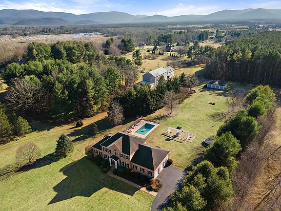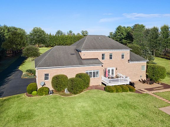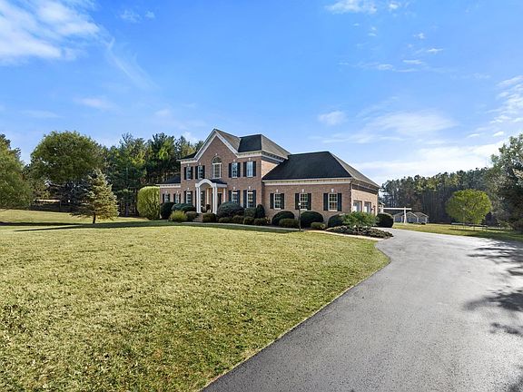 Splash into summer at home in this stunning all-brick Georgian set on 5 private acres w/pool & additional 4-car detached garage Designed for relaxation and entertainment ,the outdoor space boasts a pool w/automatic retractable pool cover (2021), custom playground and gardens. Inside you are greeted by a soaring two-story foyer w/hardwood floors, to the left a sophisticated office or music room w/ built in bookcases and glass french doors, to the right, is a spacious dining room with detailed wainscoting that opens to the expansive eat-in kitchen -showcasing the stylish granite counters that extend up the backsplash. Flowing seamlessly from the kitchen is a cozy family room w/gas FP and access to outdoor deck. This floor plan includes two staircases, as well as three ensuite bedrooms. The 1st floor primary is a true retreat featuring a newly remodeled spa-like bathroom w/soaking tub and walk-in glass shower. Upstairs you’ll find four additional bedrooms including a large versatile bonus room. Lower level w/fp & full bath can easily be an in-law suite. Two car attached garage w/epoxy flooring 8' doors & the 4 car detached w/electrical & water. Serene retreat but close to I-64, Shopping & Hospital.