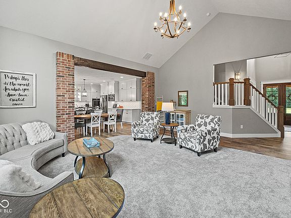 This stunning, like-new home offers over 5,000 finished square feet of thoughtfully designed living space, set on two acres. Flooded with natural light, the open-concept great room features a beautiful brick fireplace, custom built-in bookshelves, and eye-catching brick columns that define the transition into the spacious eat-in kitchen. The kitchen is a chef's dream, boasting quartz countertops, two farmhouse sinks, two dishwashers, a built-in double oven, and a large island with seating for four. The luxurious primary suite includes a cozy sitting area with a fireplace, a spa-like garden tub, double sinks, and a generous walk-in closet. Upstairs, you'll find four additional bedrooms, two full baths, a convenient additional laundry room, and ample closet space throughout. The finished basement provides even more room to spread out, with a large rec room, an additional bedroom and full bath, plus a bonus room perfect for a home office, gym, or media space. Don't miss your chance to tour this incredible home-call your favorite realtor for a private showing today!