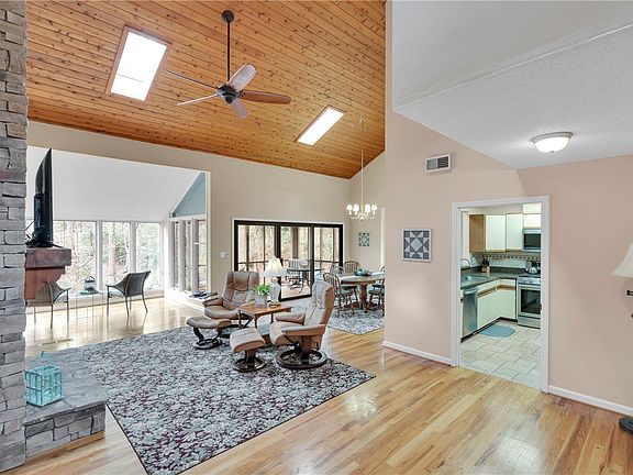 LOCATION, LOCATION, LOCATION!! Lake living at its finest and about 15 minutes to Anderson and Clemson University with Downtown Greenville just 30 minutes away. This beautifully maintained 3 bedroom, 3 1/2 bath townhome is located in a gated lakefront community on Lake Hartwell. The community offers a pool, clubhouse, tennis, plus boat and trailer storage. Dock slips may be purchased separately upon availability. Upon entering this light-filled end unit with stunning knotty pine wood, cathedral ceilings, the hardwood floors lead into an open floor plan with a sunroom and screened porch in which to enjoy your morning coffee while watching the deer go by. The main floor master suite includes a custom closet system to organize all your belongings and a bathroom that includes double vanities and a walk- in shower. Upstairs is an additional master ensuite that can also be an office. Heading downstairs to the basement, provides several storage closets, the 3rd master ensuite and a flex space to entertain a pool table, office or exercise room with sliders leading to the covered patio to enjoy some grilling in a private, serene backyard.